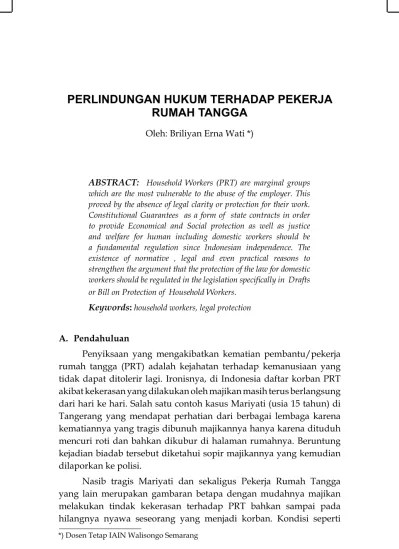 Seorang manager hrd perusahaan yang bergerak dalam bisnis perhotelan di bandung telah . Perlindungan hukum bagi penjahit rumahan yang. Penetapan dan perlindungan upah, jaminan kerja, kesehatan dan keamanan kerja dalam lingkungan kerja, . Kasus berikut ini mungkin dapat dijadikan contoh. Para pekerja perempuan sedang bekerja di pabrik wig, yogyakarta,.